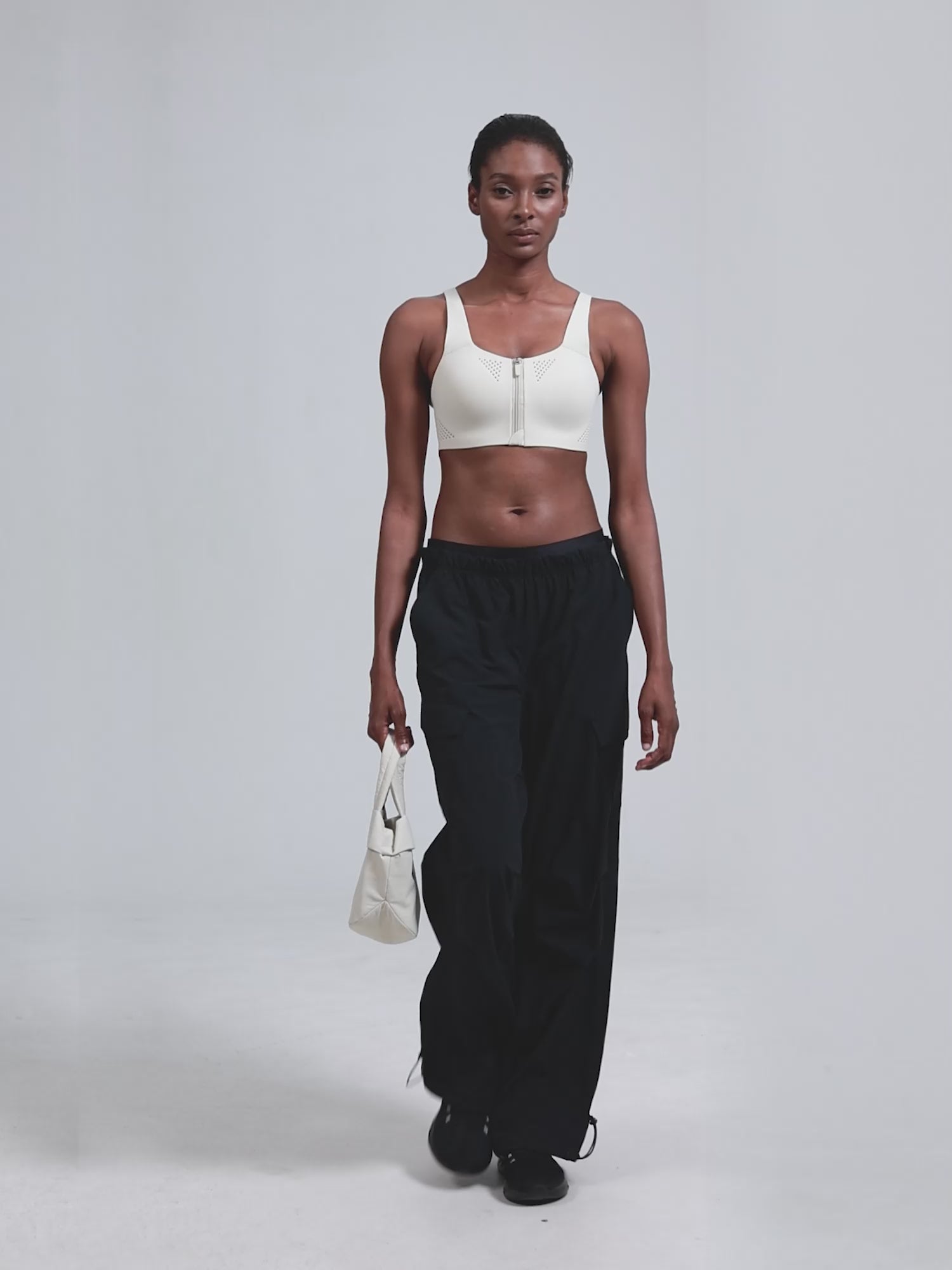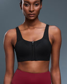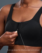 Meet your new go-to for breathable comfort and a personalized fit. Seamless construction and molded one-piece cups contour smoothly to your shape, while all-over perforations help release heat. A front-zip closure makes changes quick and easy, and the soft, skin-friendly fabric (78% nylon / 22% spandex) feels lightweight yet resilient.